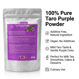 Packaged in a 200 g format, this 100% pure taro powder is suitable for both individuals and culinary professionals. It is commonly used in popular Asian beverages like milk tea, as well as in a wide variety of desserts and sweet preparations.